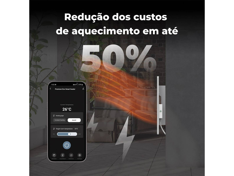 > O Aquecedor Eco Smart é a escolha perfeita para quem procura uma solução de aquecimento eficiente, económica e amigável ao ambiente.