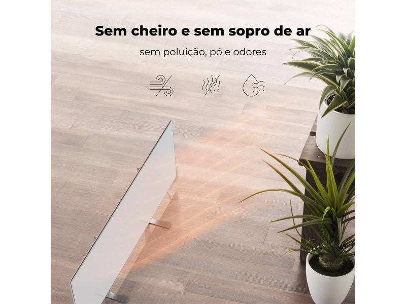 • Aquecimento Hipoalergénico: Não resseca o ar, não queima oxigénio e não emite odores ou substâncias nocivas, promovendo um ambiente mais saudável.