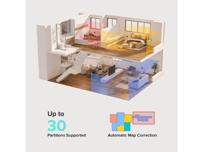 O Módulo de Visão de Ângulo Amplo permite que o sensor LDS retenha uma visão alargada quando baixado, assegurando uma navegação suave e evitando a perda de cartografia em áreas de baixa visibilidade.