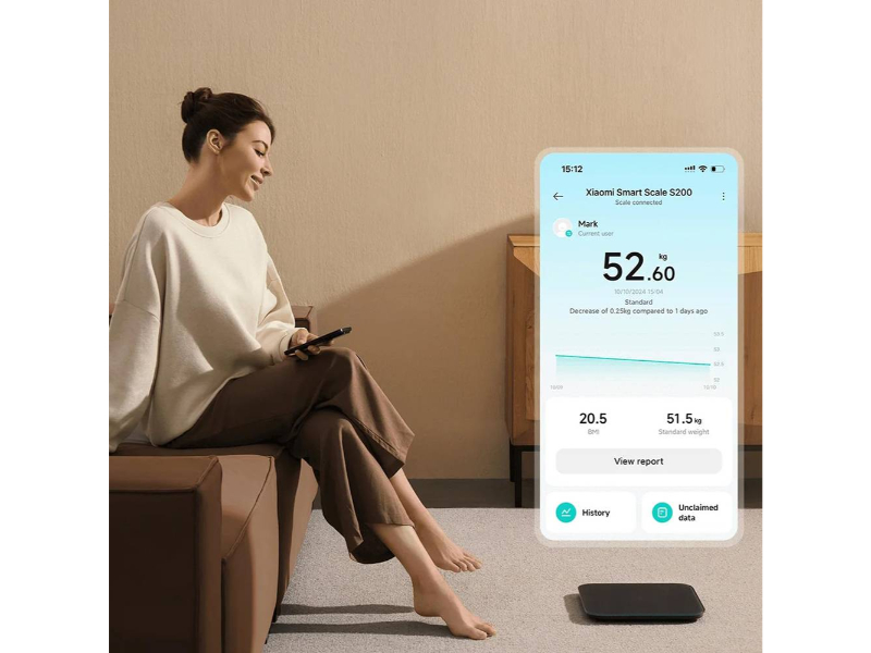 A Xiaomi Smart Scale S200 não só mede o seu peso, IMC e outras métricas corporais em tempo real, como também calcula o seu peso ideal com base na sua altura e idade, além de fornecer recomendações de controlo de peso para reduzir os riscos para a saúde decorrentes de dietas pouco saudáveis e perda extrema de peso.