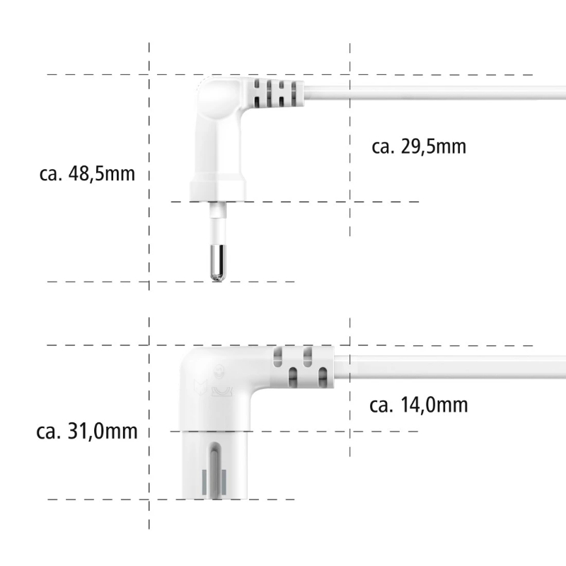 – Tomada e plug Euro com ângulo de aproximadamente de  90°