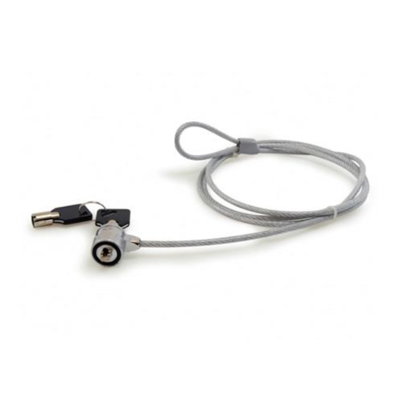 O bloqueio encaixa-se em cada notebook com um conexão compatível. Apenas fixe o cabo de 1,8 metros a um objeto firme (por exemplo, uma mesa) e conecte-o ao notebook. Inclui 2 chaves.