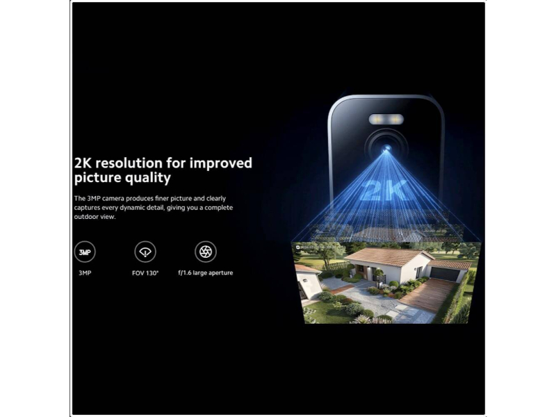 A câmara de 3 MP produz imagens mais nítidas e capta com clareza todos os detalhes dinâmicos, proporcionando-lhe uma visão completa do exterior.