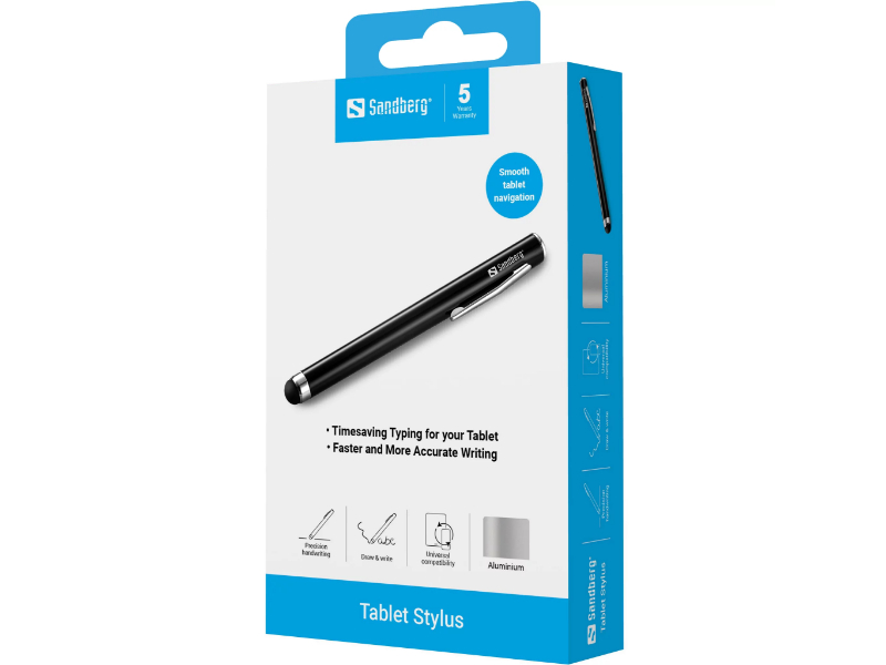 Como todos os produtos Sandberg, a Tablet Stylus Pen passa por duplo controlo de qualidade antes de chegar ao utilizador. Os materiais são selecionados para durabilidade e desempenho consistente ao longo do tempo. A garantia de 5 anos reflete essa confiança na construção do produto — uma tranquilidade pouco comum nesta categoria de acessórios, onde a maioria das alternativas do mercado oferece garantias mínimas ou inexistentes.