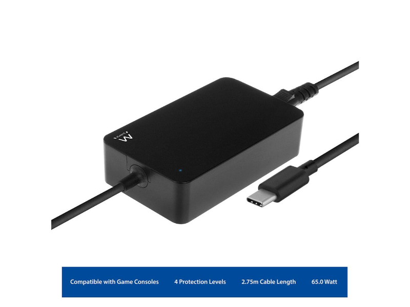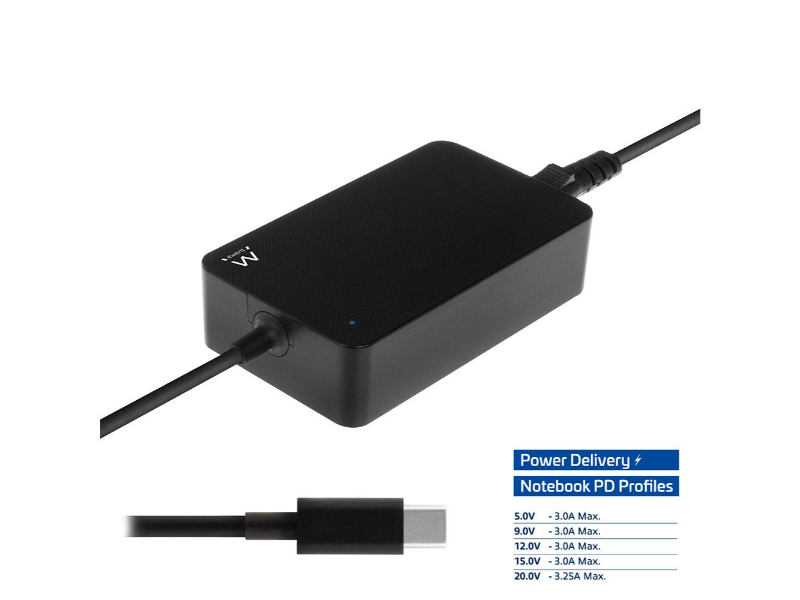 O carregador USB Tipo C para computador portátil de 65W EW3980 é o companheiro perfeito para o seu computador portátil de 15,6 polegadas com porta de carregamento USB Tipo C. O seu computador portátil será carregado sempre com a quantidade certa de energia graças aos perfis Power Delivery predefinidos. O carregador comunica com o computador portátil para determinar o perfil de carregamento mais eficaz. Tem um smartphone/tablet com USB Tipo C? O EW3980 carrega também o seu smartphone/tablet.