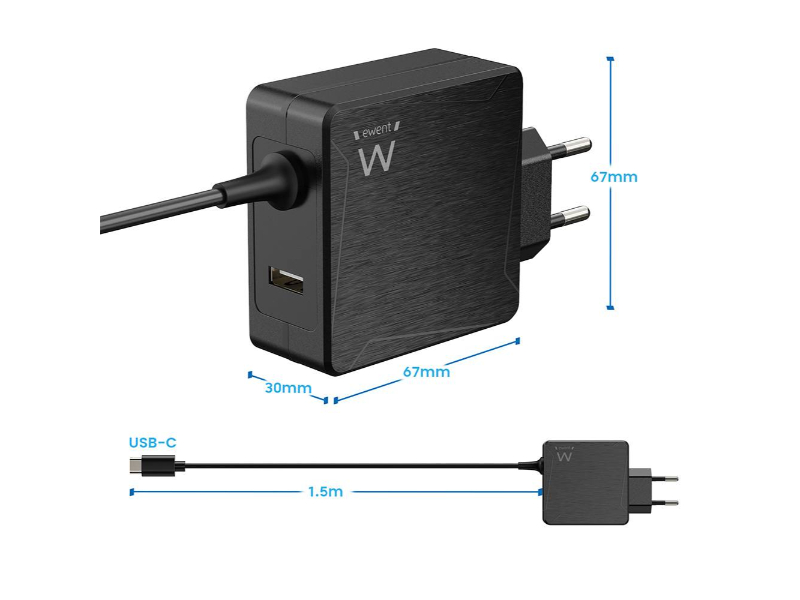 O carregador de parede USB tipo C EW3978 para computadores portáteis com PD (Power Delivery) tem um comprimento total de cabo de 150 cm. Pode deslocar-se mais livremente com o seu computador portátil/smartphone/tablet sem ter de se sentar perto da tomada de parede. Graças ao seu design compacto, o EW3978 cabe confortavelmente na sua mala e torna-se ideal para as suas viagens ou simplesmente para o levar para o escritório ou para casa.