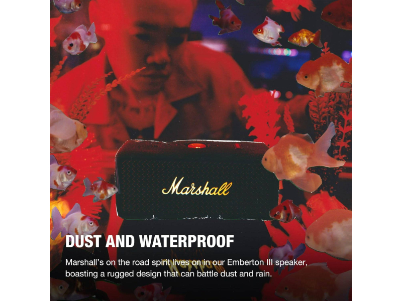Com classificação IP67 à prova de poeira e água, você pode submergir a Emberton III em 1m de água por até 30 minutos. O espírito de Marshall na estrada continua vivo neste design robusto.