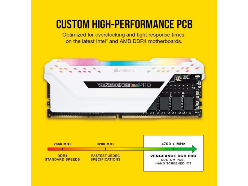 As memórias DDR4 VENGEANCE RGB PRO Series com overclocking iluminam o seu PC com luzes RGB dinâmicas multizona enquanto oferece o melhor desempenho.