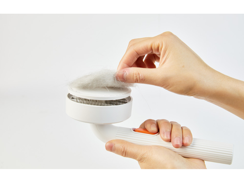 Limpar a escova é mais fácil do que você imagina. O botão grande, localizado no cabo, permite remover facilmente os pelos acumulados. Você não precisa mais perder tempo limpando a escova tediosamente — basta apertar o botão e pronto!