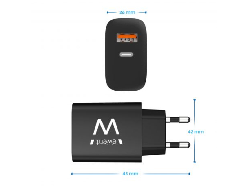 Carregue a sua próxima geração de smartphones ou tablets Apple (incluindo iPhone 14) e Android com o carregador rápido USB-C EW1319 de 20 watts equipado com Power Delivery e USB-A QC3.0. Este potente e compacto carregador USB-C é fácil de levar. O carregador USB-C para de carregar automaticamente quando a bateria está cheia.