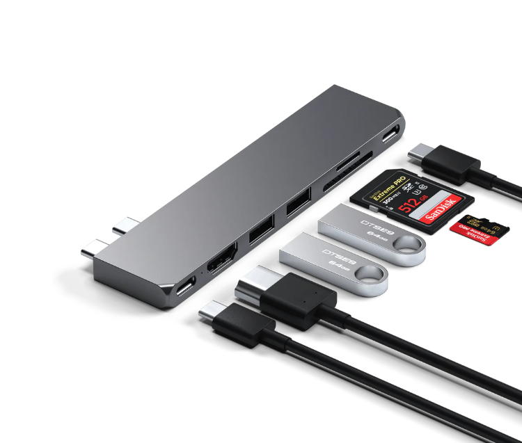 Tão suave e elegante que você dificilmente notará que está lá. O Pro Hub Slim vem em três cores que combinam perfeitamente com os MacBooks.