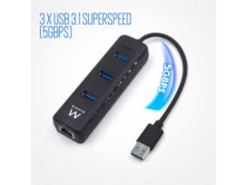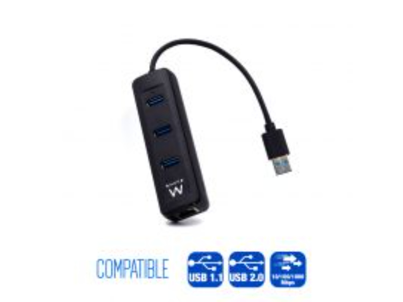 O Concentrador USB 3.1 de 1ª Geração (USB 3.0) com porta Gigabit EW1140, é retrocompatível com as especificações USB 2.0 e 10/100Mbps.
