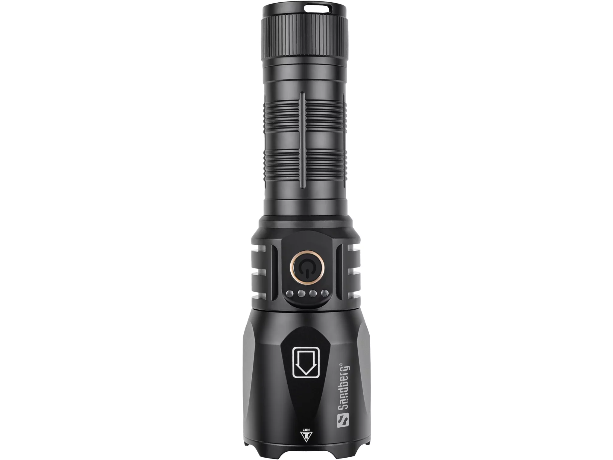 Lanterna e Powerbank Sandberg Survivor Torch 5000: XHP160 1200lm, Zoom 500m, IPX4 e Martelo de Emergência