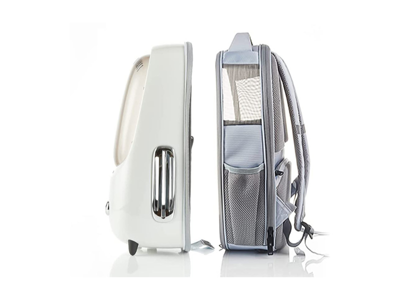 Esta mochila exclusiva servirá você por muito tempo. Ela é feita de materiais de excelente qualidade, incrivelmente duráveis ​​e resistentes a danos. Ela não se intimidará com os dentes e garras do seu pet! Apesar de tanta durabilidade, a mochila também é surpreendentemente confortável. Pesa apenas cerca de 1,4 kg e se destaca por seu design ergonômico e inteligente. A malha respirável e os suspensórios especialmente projetados, posicionados nas costas, proporcionam um conforto incomparável. Além disso, as pernas de metal permitem que você coloque a mochila com firmeza no chão – você não precisa se preocupar com ela cair!