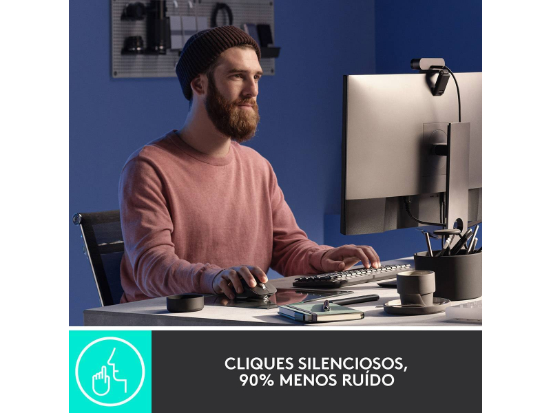 O rato MX Master 3S por Bluetooth apresenta Cliques silenciosos – com a mesma sensação mas com 90% menos ruído de cliques