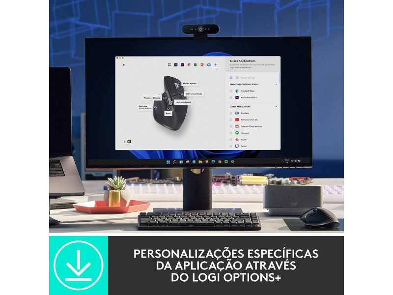 Personalize os botões e optimize o seu fluxo de trabalho com perfis específicos da aplicação no Logi Options+