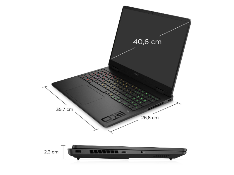 • Ecrã: 2K (1920 x 1200) antirreflexo de 40,6 cm (16 pol.) na diagonal, 144 Hz, IPS, moldura fina, 300 nits, 62,5% sRGB