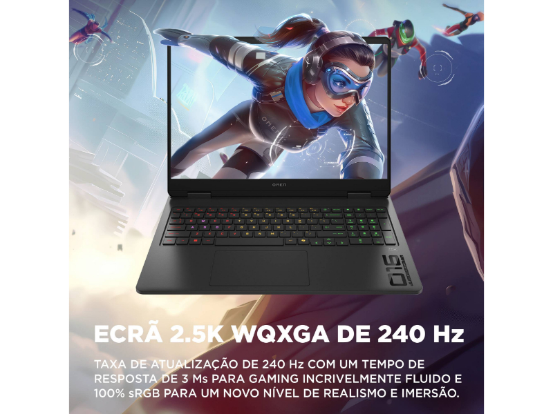 O HP OMEN 16 é um portátil de gaming poderoso que combina os mais recentes processadores Intel® com placas gráficas NVIDIA® de última geração, garantindo desempenho excecional nos jogos mais exigentes. Equipado com avançadas soluções térmicas, mantém a temperatura sob controlo mesmo em sessões intensas.
