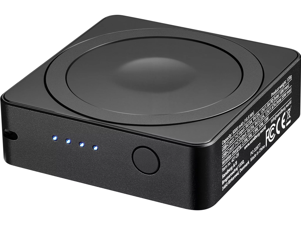 Com capacidade de 5000 mAh (18,5 Wh), o Sandberg 3in1 5000 oferece aproximadamente uma recarga completa de um iPhone moderno, tornando-o adequado como complemento de carga para um dia de uso intensivo ou como reserva de emergência. A capacidade de 5000 mAh é uma escolha deliberada de equilíbrio entre autonomia e compacidade: uma powerbank com capacidade superior seria necessariamente mais pesada e volumosa, comprometendo a portabilidade que é o argumento central deste modelo. Para quem precisa de autonomia alargada por vários dias, os modelos Sandberg de 10000 mAh são a alternativa natural; para quem quer uma powerbank que se prende ao iPhone e está sempre disponível sem ser perceptível na mochila, os 5000 mAh e os 120 g são a combinação correcta.