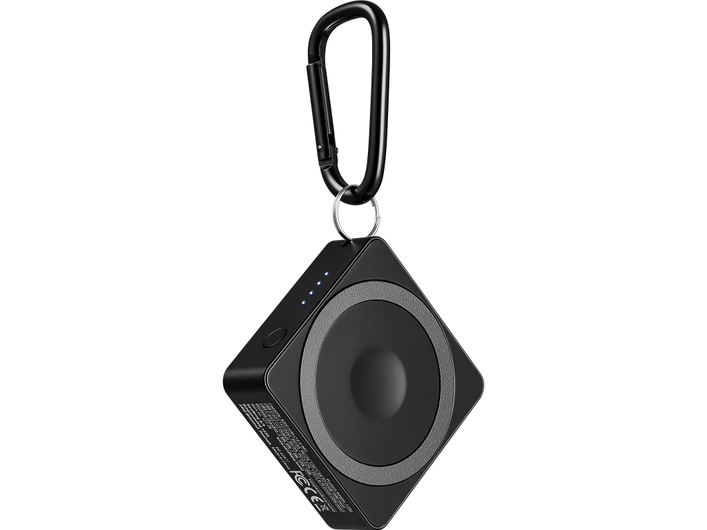 A carcaça em liga de alumínio confere resistência mecânica e qualidade de acabamento superiores às das powerbanks em plástico comuns nesta categoria. Com dimensões de 59 x 59 x 18 mm e 120 g de peso, cabe num bolso de casaco ou de mochila sem ser perceptível em volume ou peso. A embalagem inclui um mosquetão que permite prender a powerbank à mochila, ao cinto ou ao estojo do portátil, mantendo-a acessível durante actividades ao ar livre ou em deslocação. O mosquetão é especialmente útil em combinação com a fixação magnética MagSafe: a powerbank fica presa à mochila e o iPhone fica preso à powerbank, carregando durante o movimento sem ocupar as mãos.