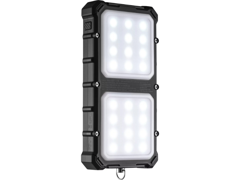 > Para campistas e aventureiros que querem energia e iluminação de área num formato mais leve e compacto do que o modelo de 20000mAh, o Sandberg Solar Powerbank CampLED 10000 oferece 37Wh em carcaça IP65, lâmpada LED de 200 lúmens, USB-C PD 20W, USB-A 22,5W, painel solar 1,25W, modo Always-ON, pass-through e suporte para tripé 1/4″ em apenas 250g. Carregamento completo via USB-C em 2,5 horas.