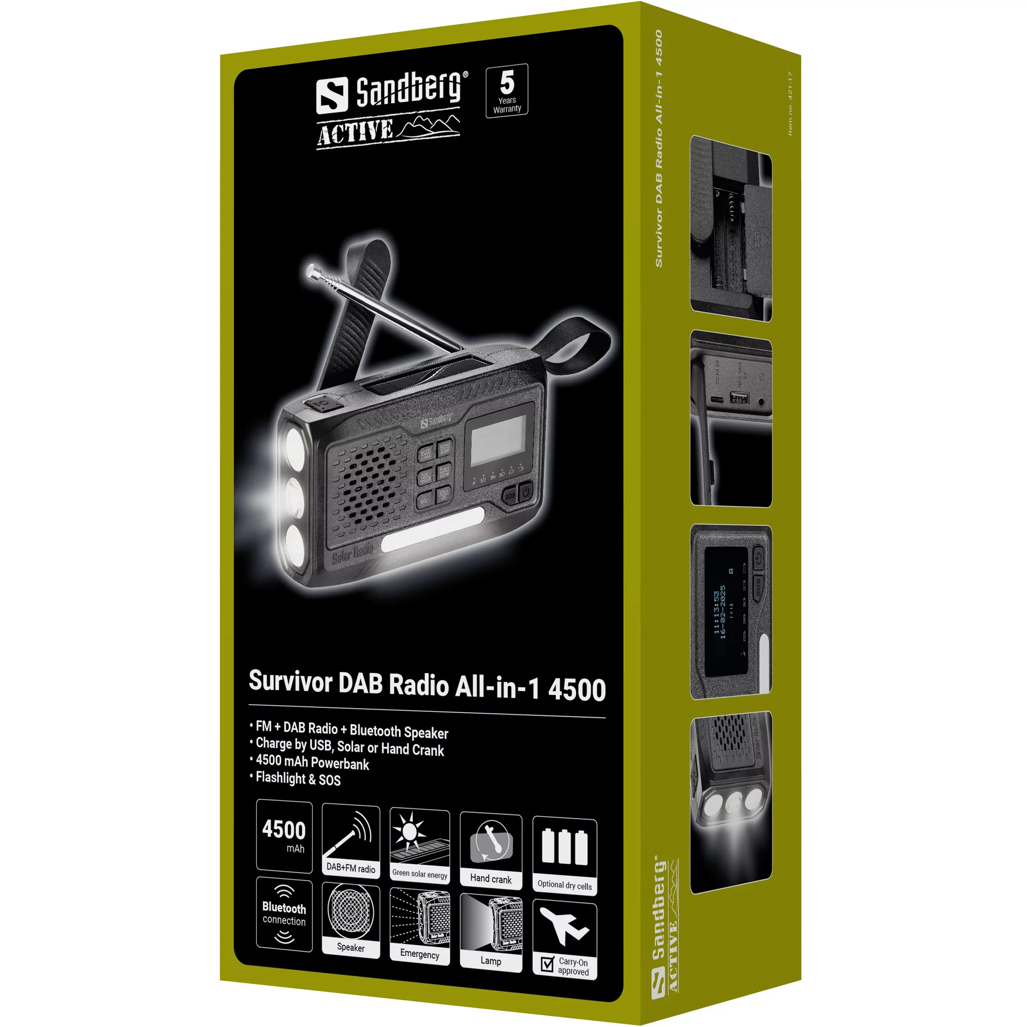 O rádio suporta DAB+ na banda de 170 a 240MHz e FM de 87,5 a 108MHz, cobrindo os dois standards de rádio digital e analógico actualmente em uso em Portugal e na maioria dos países europeus. O DAB+ oferece melhor qualidade de som e mais canais do que o FM nas áreas com cobertura, enquanto o FM garante recepção nas zonas onde o DAB+ ainda não chegou. A autonomia de até 20 horas em modo rádio exclusivo significa que um carregamento completo da bateria de 4500mAh suporta um dia inteiro de escuta contínua, suficiente para manter a ligação a emissões de emergência ou simplesmente para ter companhia sonora durante um dia de camping ou pesca. A Vardagsprepping.se elogiou especificamente a qualidade sonora do rádio, com graves surpreendentemente bons para o tamanho do dispositivo.
