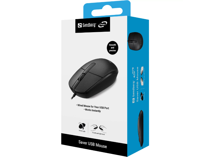 O Sandberg Saver USB Mouse é um ótimo rato para escritório ou para usar em casa. É também leve e compacto, portanto pode facilmente levá-lo consigo juntamente com o seu computador portátil. O rato é ligado a uma porta USB e funciona imediatamente sem instalação de drivers.