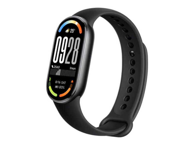 Disponível com estrutura em alumínio leve ou cerâmica premium, a Smart Band 10 apresenta um formato oval elegante que se adapta confortavelmente ao pulso. Oferece várias cores para personalização, incluindo preto, branco, rosa e prata. A certificação de resistência à água 5ATM permite uso seguro na piscina ou durante atividades ao ar livre.
