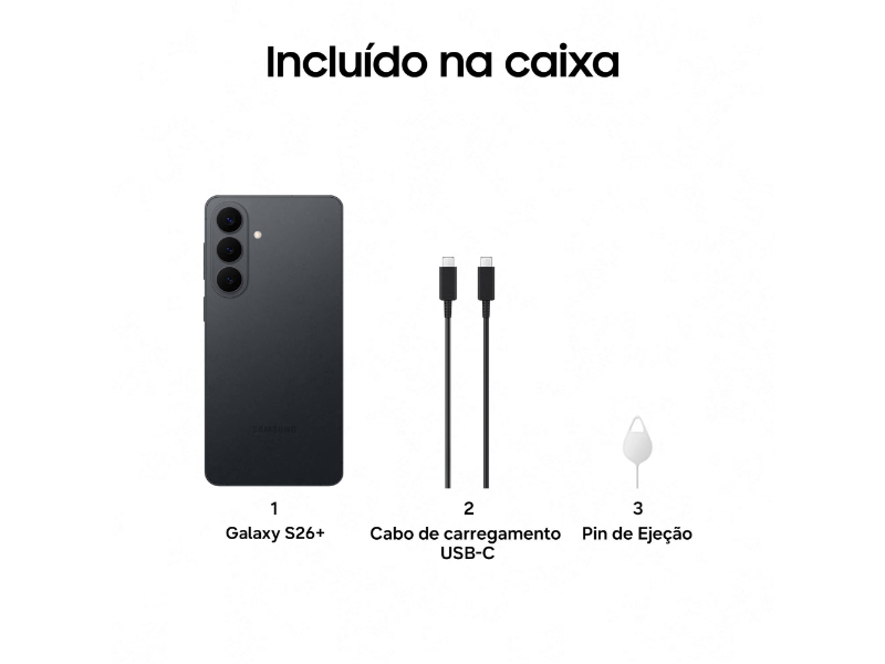 Descubra o Galaxy S26+, o smartphone que eleva a experiência AI. Com design icónico em Alumínio Armor e vidro Gorilla Glass de última geração, combina elegância e resistência IP68, num corpo fino de 7.3 mm e 190g. O ecrã 6.7″ Dynamic AMOLED 2X WQHD+ (120Hz) atinge 2600 nits, com Vision Booster, tratamento antirreflexo e o primeiro Filtro de Privacidade integrado do mundo, onde graças à sua tecnologia inovadora, você pode ativar o Filtro de Privacidade em qualquer momento para que tudo seja visível exclusivamente para si, garantindo que ninguém à sua volta consiga ver o que está a fazer. Equipado com o poderoso Samsung Exynos 2600, oferece ganhos significativos de CPU, GPU e NPU para uma Galaxy AI ainda mais rápida e intuitiva, integrada no One UI 8.5 com 7 anos de atualizações. A câmara principal de 50MP f/1.8, garante fotos e vídeos incríveis em qualquer condição. Com bateria de 4900mAh e carregamento Super Rápido 3.0 de 60W, terá até 75% em apenas 30 minutos.