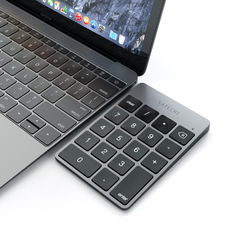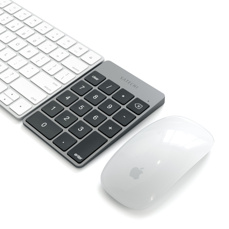 O design em alumínio elegante vem em dourado, prateado ou cinza, tornando o teclado o complemento perfeito para seus produtos Apple.