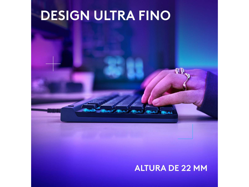 O design sem ténue e a altura de 22 mm ultrapassam os limites do design da estrutura para um suporte elegante e ergonómico sem comprometer o desempenho dos jogos.
