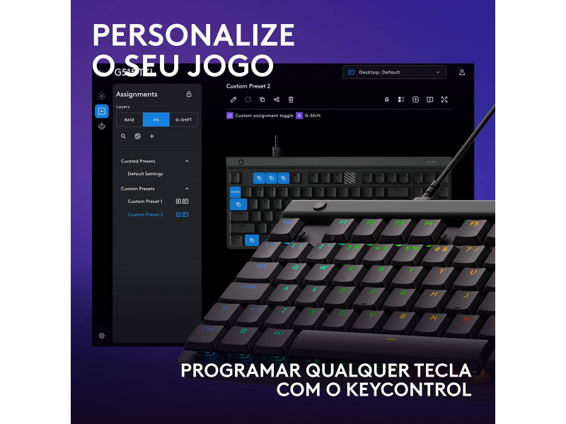 Projetado para jogar, concebido para o conforto. O G515 TKL inclui interruptores lubrificados de fábrica, teclas PBT de duplo disparo de baixo perfil e uma construção em camadas com amortecimento de som para uma experiência de digitação de qualidade superior sem comprometer a durabilidade.