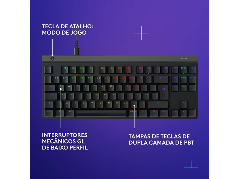 O teclado para jogos sem teclado com fio Logitech G515 TKL oferece alto desempenho e estética discreta. Personalize o seu jogo com um equipamento concebido para aguentar momentos de jogo intensos e concebido para uma experiência de jogo bem afinada.