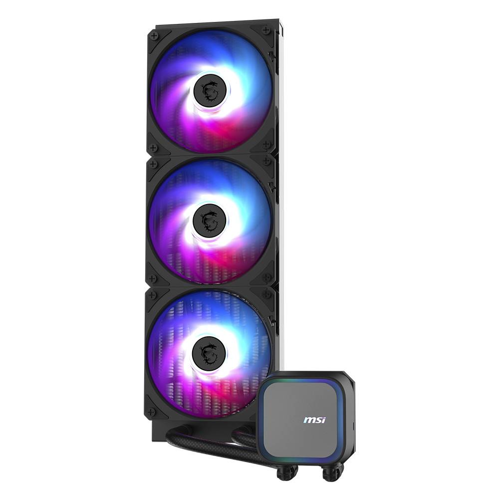 > O Water Cooler CPU MSI MAG CoreLiquid A13 360 All-In-One Preto oferece um sistema de refrigeração eficiente e elegante para PCs de alto desempenho.
