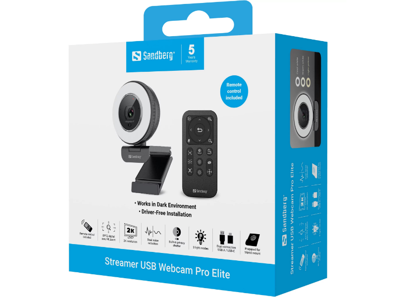 A iluminação é o factor que mais frequentemente distingue uma boa imagem de uma imagem amadora numa webcam, e a Sandberg Pro Elite resolve isso de forma directa: um aro de LEDs integrado no corpo circular da câmara fornece iluminação frontal suave e uniforme directamente na direcção do rosto do utilizador. O controlo táctil permite ajustar a intensidade da luz sem aceder a menus de software, e o telecomando incluído permite fazer o mesmo ajuste à distância durante uma transmissão ao vivo sem interromper o fluxo de conteúdo. Para streamers que constroem o setup num espaço com iluminação variável ao longo do dia, esta ring light integrada elimina a necessidade de um anel de luz separado de suporte, reduzindo o número de acessórios e cabos no espaço de trabalho. A Geekinfos.fr destacou precisamente a combinação de facilidade de instalação, qualidade de imagem e iluminação integrada como os factores que tornam esta webcam especialmente adequada para streamers iniciantes ou para quem quer um setup leve mas capaz.